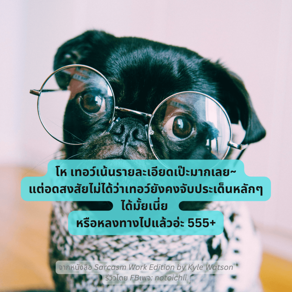 แอดไปได้หนังสือเล่มนี้มา Sarcasm: Work edition ของ Kyle Watson เป็นมุขประชดประชันในที่ทำงาน ที่ถ้าได้อ่านแล้วก็จะอมยิ้มขึ้นมาทันที ว่า “ใช่เลย มันเคยเกิดขึ้นกับชั้น” เย่